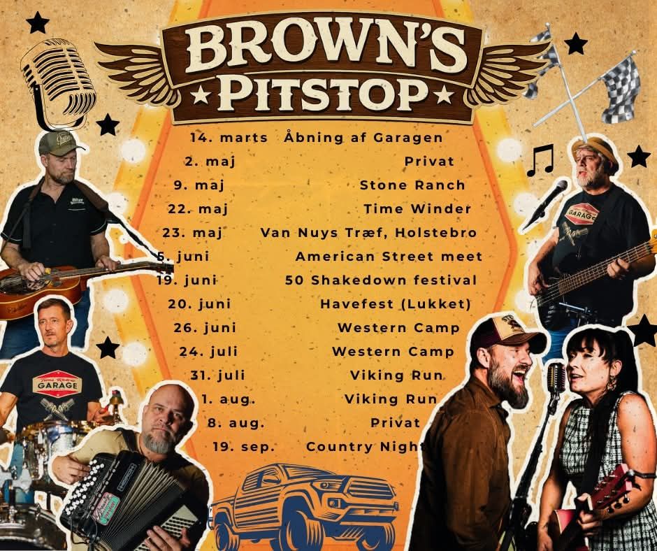 Lørdag den 23 maj spiller Brown's pitstop: